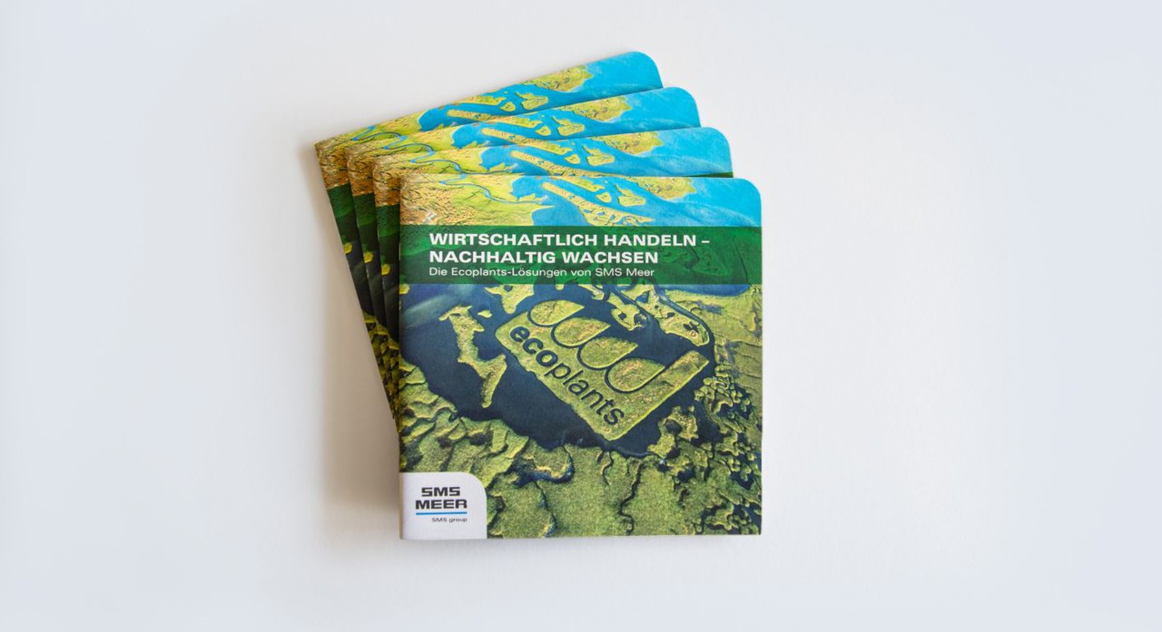 Ecoplants – wirtschaftlich handeln, nachhaltig wachsen, das ist das Erfolgskonzept hinter der Nachhaltigkeitskampagne von SMS Meer. Wir unterstützten das Unternehmen dabei, das Thema Nachhaltigkeit visuell umzusetzen und in verschiedenen Werbemitteln darzustellen. Zentrales Element der Kampagne war das von uns erstellte Esoplants-Logo, mit dem besonders nachhaltige Maschinen ausgezeichnet wurden und das als Keyvisual der Kampagne diente.