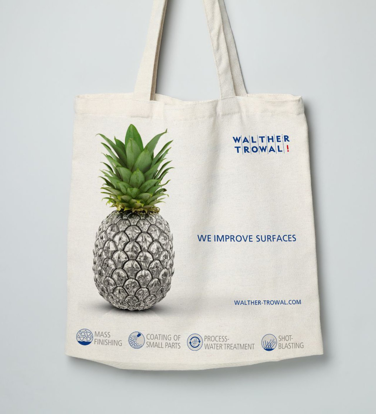 Für Walther Trowal entwickelten wir eine noch laufende, emotionale Kampagne, die spielerisch demonstriert, was im Bereich Oberflächenbearbeitung möglich ist. Unter dem Motto „Wir verändern Oberflächen“ („We improve Surfaces“) zeigen wir am Beispiel von verschiedenen Obst- und Fruchtsorten die Möglichkeiten einer Oberflächenbearbeitung aufmerksamkeitsstark und humorvoll auf.